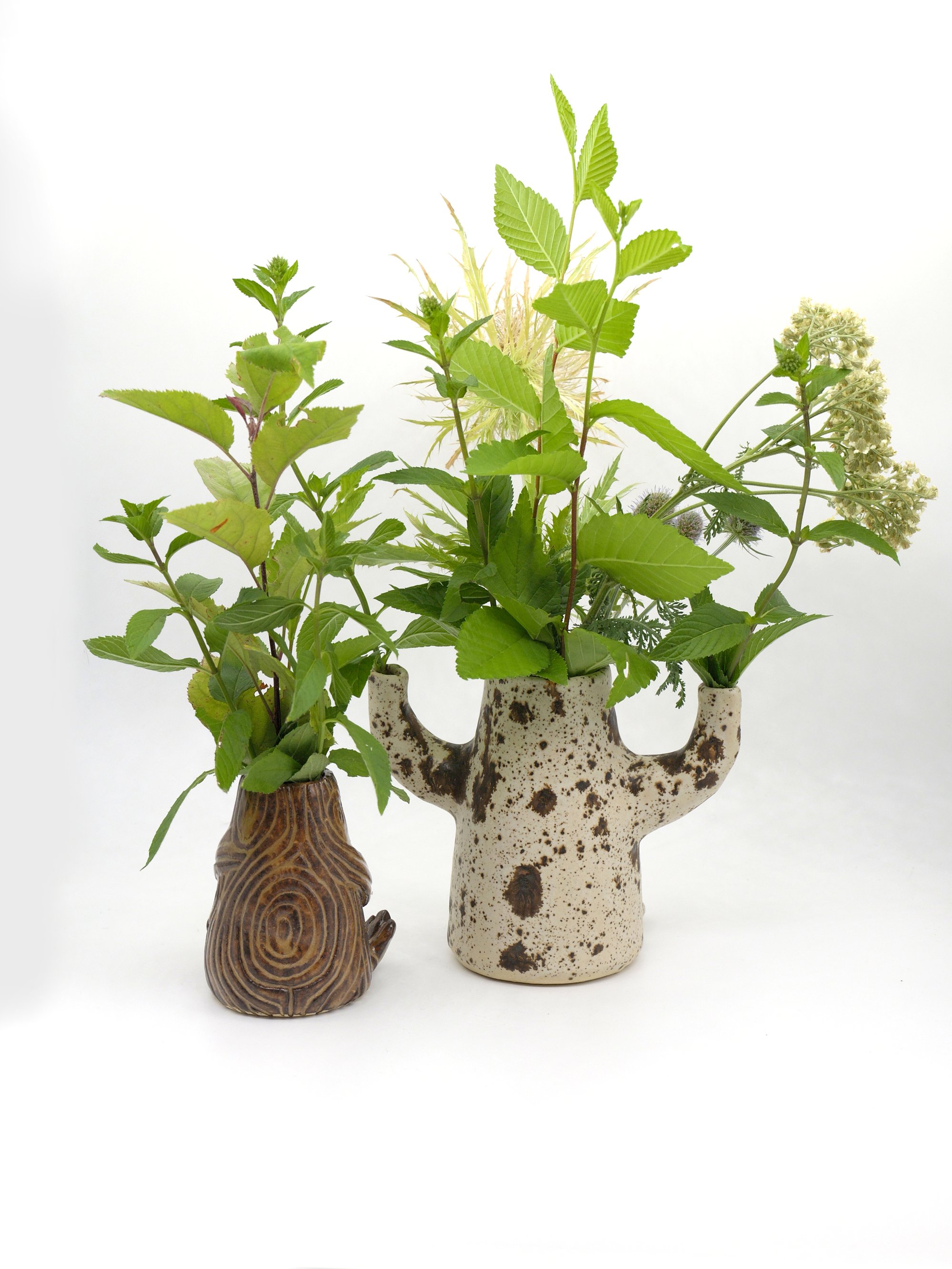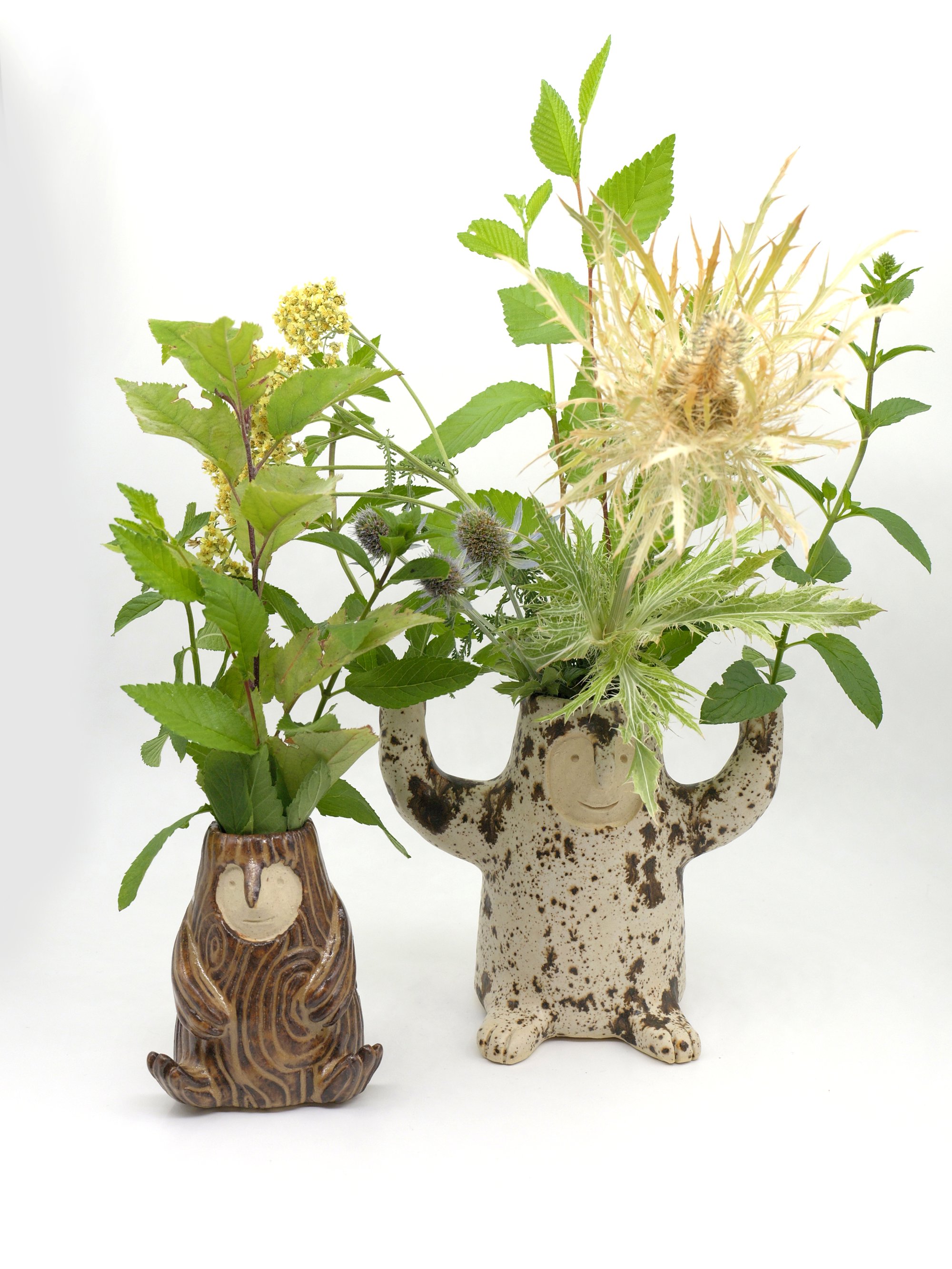 These little dryads never need worry about losing their leaves in winter - just cut some fresh ones and stick them right back in or switch from leaves to needles to flowers!